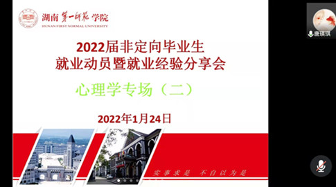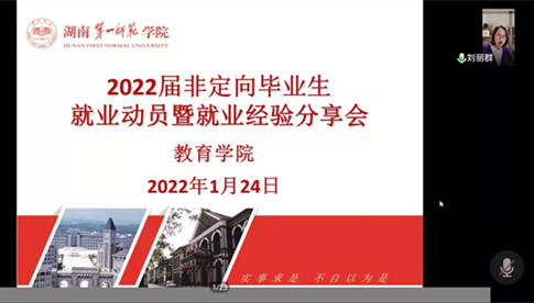 1月24日晚,伟德betvlctor1949源于英国以腾讯会议的方式线上举行2022届非定向毕业生就业动员暨就业经验分享会,学校招生就业处领导老师莅临指导,学院党政全体领导班子,学工办主任、就业专干、毕业班辅导员参加会议。会议由院长刘丽群教授主持。