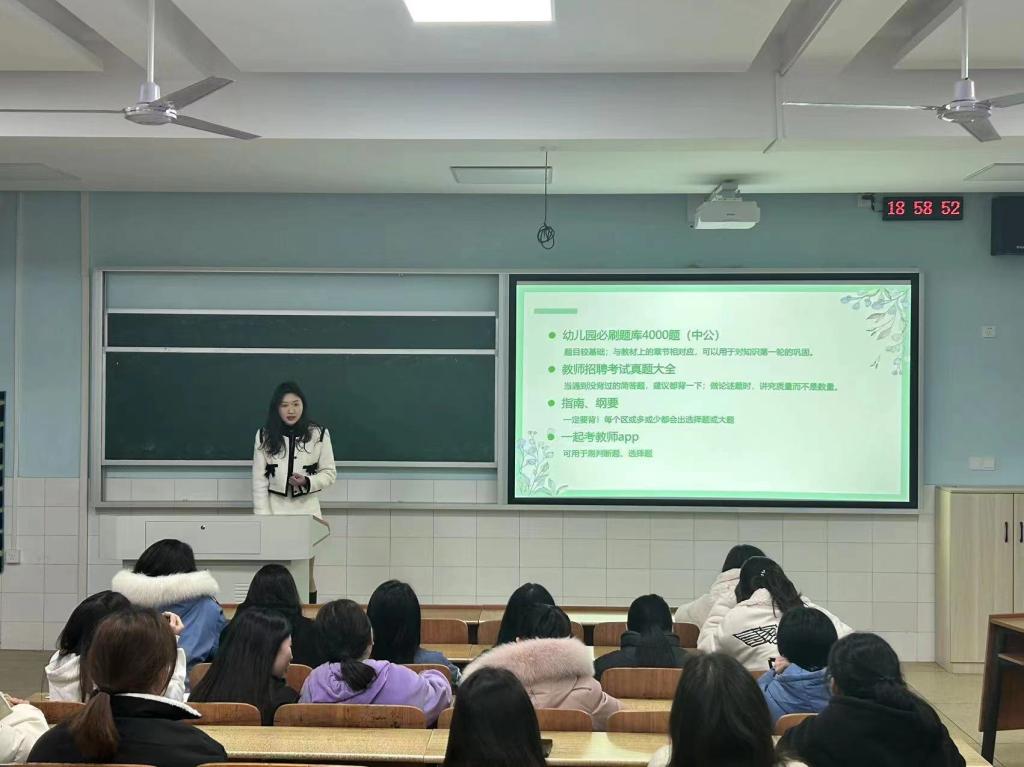 为增强学前教育专业毕业生就业能力,实现毕业生高质量就业。2月26日晚,我院在怀中南201教室举行“丽泽校友讲坛”第三讲,此次主讲嘉宾为2022届学前教育专业刘彦伶、何娟和2023届朱婷同学,讲座主题为如何备考幼儿教师编制,院学工办主任刘军主持会议。