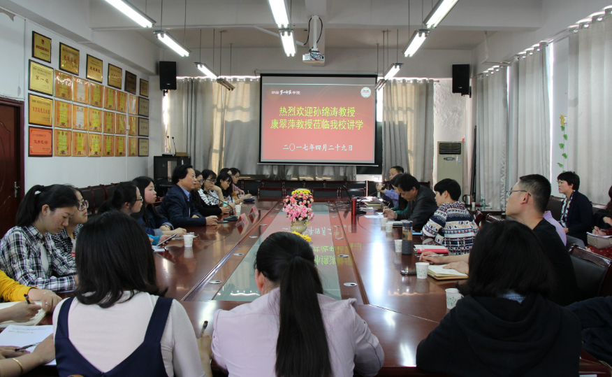 2017年4月29日下午,沈阳师范大学特聘教授孙绵涛、中南民族大学康翠萍教授应邀来我校讲学,讲座于科技楼a栋208会议室举行,教育科学学院院长蒋蓉、副院长王建平、副院长胡春光以及30余名师生参加了此次讲座,讲座由蒋蓉院长主持。