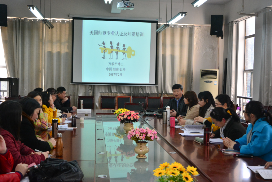 座谈会上,万毅平教授还向老师们介绍了美国小学教师工资、工作状况、在职进修与培训等方面的情况,气氛活跃,老师们很受启发。