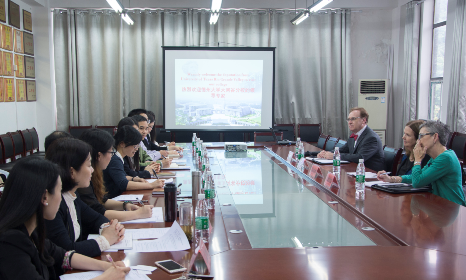 5月23日下午,美国德州大学大河谷分校副校长、常务副教务长dr. cynthia jones brown,副教务长、国际事务处处长dr. dennis michael hart,伟德betvlctor1949源于英国院长dr.patricia maria mchatton,郎勇教授pr.yong lang一行专程来我院就两校对口二级学院开展合作进行商谈。学校国际交流处处长刘明东、我院院长蒋蓉、副院长王建平、副书记张俭明、心理学教研室主任朱丹、学前教育教研室主任万湘桂、科学教育教研室主任庄远红、小学教育教研室戴小春教授、党政办副主任李令老师热情接待了来访客人。