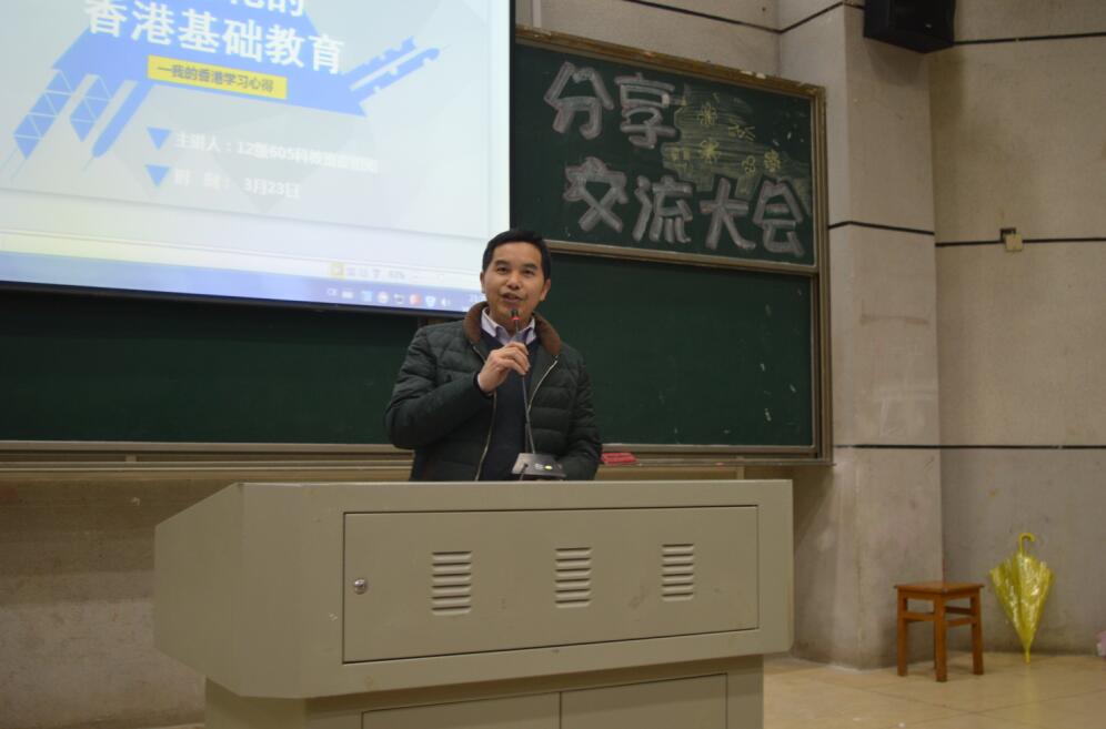 2016年3月23日晚,我院在文科楼报告厅隆重举行公费师范生香港访学交流会。校国际交流处刘明东处长应邀出席,蒋蓉院长、张俭明副书记以及学工办陶青老师等在前排就坐,教科院300余名师生参与了此次交流活动。