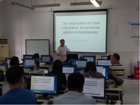 第二环节,刘顺博士以《言语理解中的语音预期》为题,系统介绍了自己的博士论文研究课题。从中文言语中的变调现象选题,利用眼动追踪、脑电、功能磁共振成像等技术手段,探究了中文母语者在普通话理解中的语音预期效应及其大脑加工机制,让大家对语音预期加工有了更深入的理解。