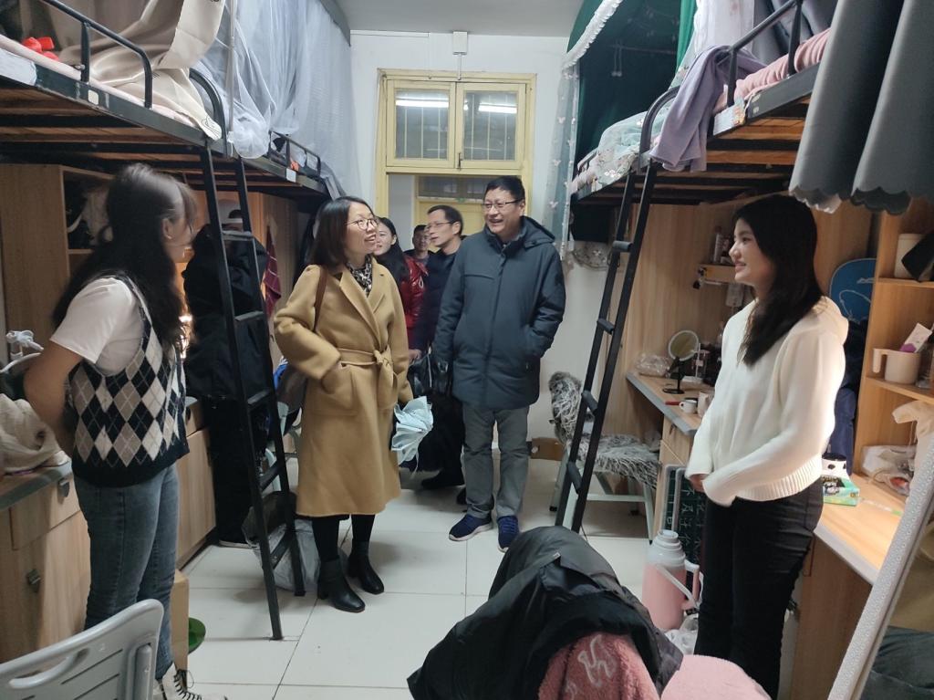纷飞的大雪挡不住关怀的脚步,冷却不了温暖的热情。2月22日傍晚,伟德betvlctor1949源于英国党委书记刘澍心、院长刘丽群、副书记张志新、副院长黄月胜、学工办主任刘军带领全体辅导员前往学生公寓看望同学们。