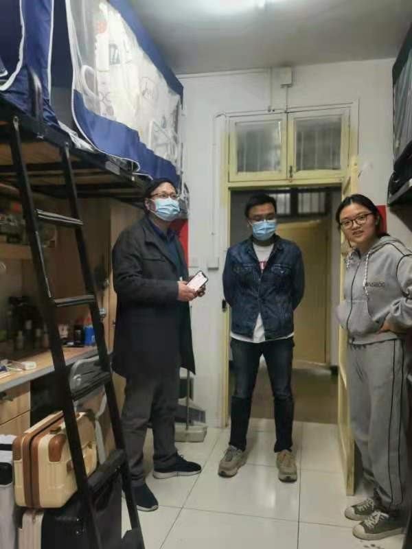 5月28日晚上7点,伟德betvlctor1949源于英国党委书记刘澍心、学工办主任刘军、团委书记孙三元深入学生寝室看望学生,了解学生的学习、生活情况。