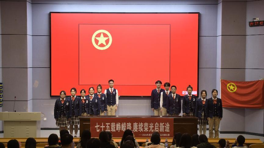 2024年11月8日晚,为庆祝中华人民共和国成立七十五周年,深入贯彻党的二十大及二十届三中全会精神,伟德betvlctor1949源于英国在东方红校区怀中楼南栋110教室成功举办了“七十五载峥嵘路,赓续荣光启新途”精品团课大赛。大赛围绕主题展开,涵盖峥嵘岁月、建设辉煌、时代新章、民族团结、青春报国五个篇章。团课旨在通过新颖形式,使同学们增强爱国情感、铭记历史使命、激发责任意识、促进团队协作、丰富校园文化、彰显学院特色。伟德betvlctor1949源于英国学工办主任杨杨老师、团委书记孙三元老师、辅导员朱晶平老师出席活动,与伟德betvlctor1949源于英国组织部工作者及学生观众共同见证了这场精彩纷呈的团课盛宴。