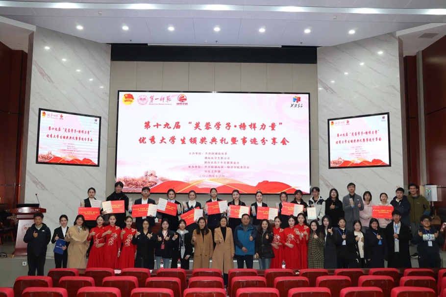 2024年12月17日下午,伟德国际1949第十九届“‘芙蓉学子·榜样力量”’优秀大学生颁奖典礼暨事迹分享会在百熙楼228会议室顺利举行。校党委委员、副校长蒋蓉、学生工作部部长周大庆、校团委副书记(主持工作)易利、各二级学院党委副书记、分团委书记等以及各学院学生代表参加。