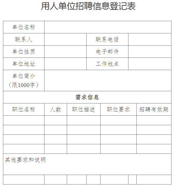 附件:用人单位招聘信息登记表(表式)