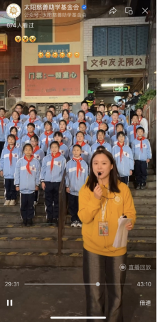 图1:2023年4月,担任直播主持人,活动由太阳慈善助学基金会联合长沙文和友、长江商学院举办乡村美育作品展